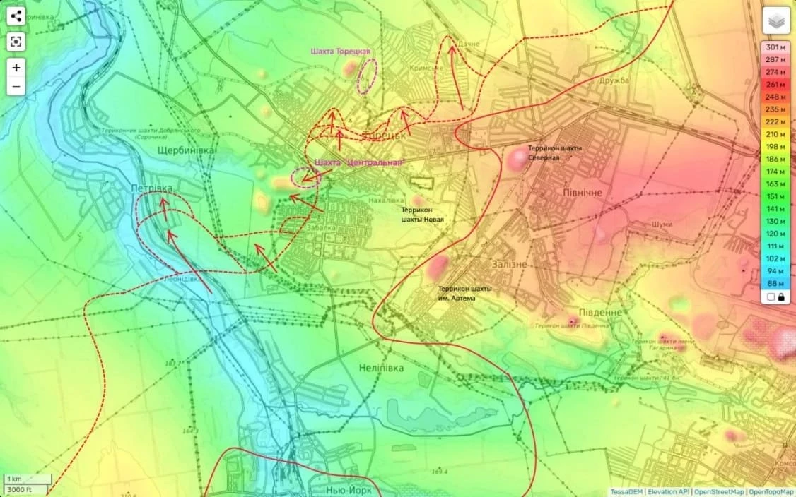 «Мы продвинулись как в центре города, в сторону шахты «Торецкая», так и в районе Забалки, приближаясь к терриконам шахты «Центральная». В северной части города наши войска уже прошли высотную застройку и вошли в районы с малоэтажными домами», - проинформировал он.