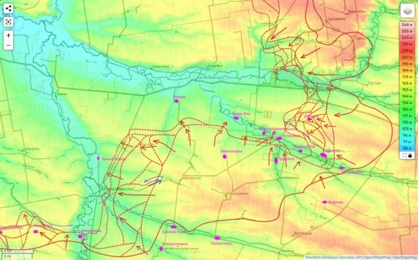 Также идут бои в районе населённых пунктов Сухие Ялы и Константинопольское. И в районе оставшегося небольшого мешка вдоль реки Сухие Ялы. Здесь за вчера без особых изменений, сообщает Юрий Подоляка в своём Telegram-канале.