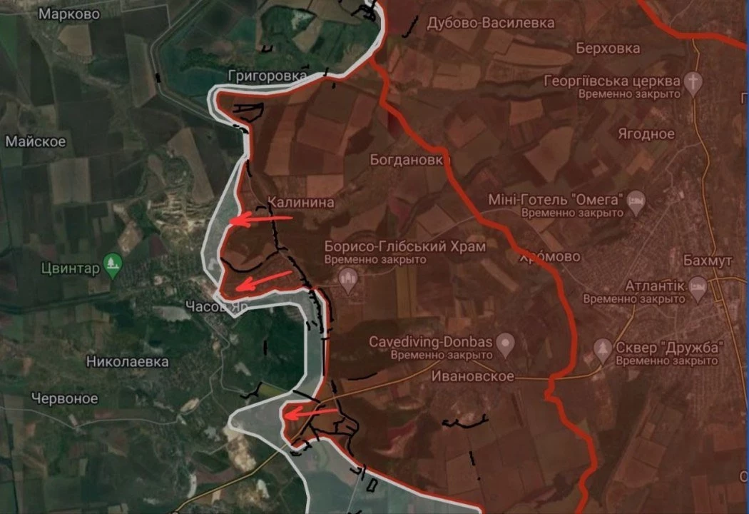 На ЧасовЯрском направлении ВС РФ имеют тактические успехи в мкр. Северный, продолжаются позиционные бои в мкр. Октябрьский и Новый.