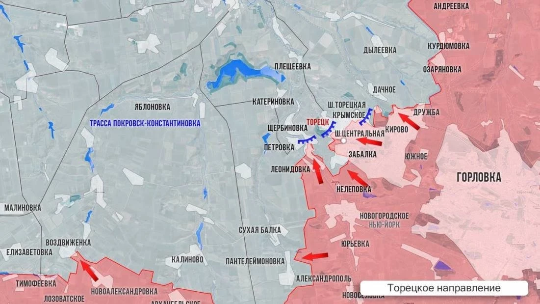 Торецкий участок. Торецк - город на возвышенности с его шахтами и терриконами - был атакован в лоб после мощного разнонаправленного продвижения от Очеретино, что застало противника врасплох. Российским подразделениям удалось продвинуться на 7 км в плотной городской застройке. Наши штурмовики пробились к шахте Торецкая в северной части города. Сейчас бои разворачиваются в районе шахты Центральная и южнее её терриконов. Есть продвижение и в близлежащей Щербиновке. Освобождение Торецка создаст угрозу для Константиновки - последней значимой позиции противника перед Славянско-Краматорской агломерацией. Второй важнейший момент - отодвинув здесь фронт, наши военные обезопасят пригороды Горловки, по которым украинские силы продолжают ежедневно вести прицельный огонь.