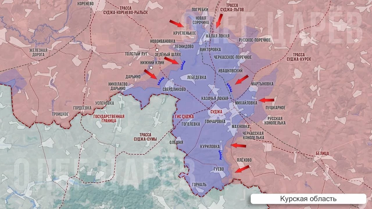 Также наши части продолжают активные штурмовые действия от Новоивановки по направлению к Леонидово, сражаются в Кругленьком и на подходах к Викторовке, пишет Олег Царёв в своём Telegram-канале.
