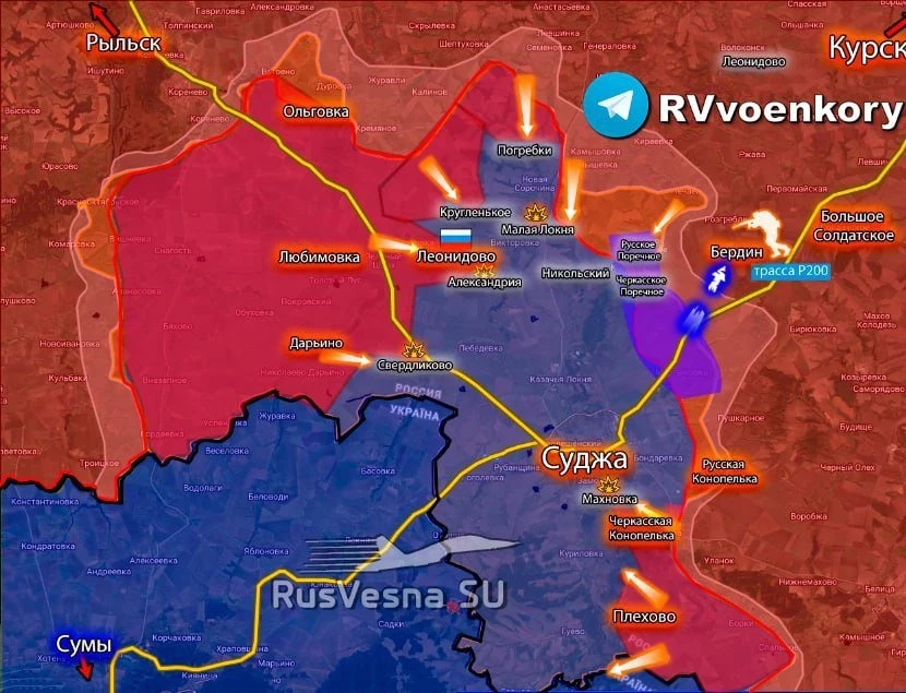Активные бои идут сейчас и ближе к Судже, в Махновке. По последним данным, полного контроля над селом нет ни у одной из сторон. Сообщают, что российские штурмовые группы вплотную подошли к Бондаревке, там также идут интенсивные бои.