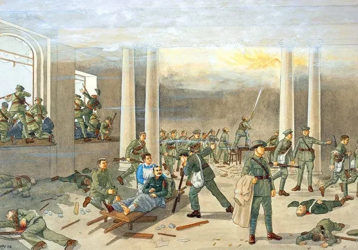 В Главпочтамте располагался штаб повстанцев, англичане подтянули артиллерию и начали обстрел здания. Коннолли получил пулю в лодыжку и передал командование Пирсу. Когда из-за обстрела разгорелся пожар, повстанцы решили эвакуироваться. Они проломили стену и заняли новые позиции в соседнем доме. Но то, что дальнейшее сопротивление приведёт только к ещё большим жертвам среди гражданского населения города, было ясно всем. Пирс отдал приказ повстанцам — капитулировать. Последние защитники Дублинского Главпочтамта сдались 29 апреля. Одним из последних сдался командир 3-го батальона добровольцев Имон де Валера — будущая звезда ирландской политики.