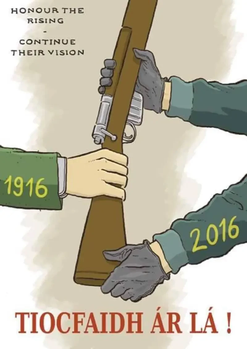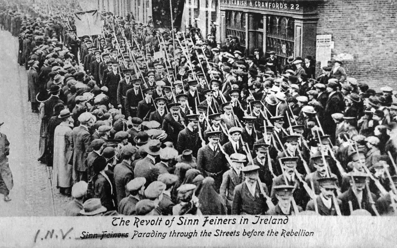 Какое значение имело последнее восстание? Ну, 1480 человек были интернированы в лагере во Фрончоге. Этот лагерь стал настоящим университетом ирландских революционеров! Через него прошли такие «отцы ирландской демократии», как Майкл Коллинз, Теренс Мак-Суини и множество других борцов за независимость, тех, кому предстоит добиться свободы Ирландии. А ещё... Депутаты британского парламента от националистической партии Шинн Фейн вышли из его состава и создали свой, ирландский парламент, объявивший о создании Ирландской республики. А любой республике нужна армия. И она появилась — Ирландская республиканская армия...