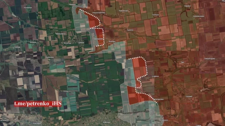 На Константинопольском направлении российские войска давят в восточной части Андреевки с опорой на Шевченко и Петропавловку.