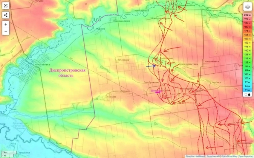 Одним из которых и является населённый пункт Запорожье. Отсюда любое продвижение здесь крайне затруднительно. И тем не менее оно здесь есть. Наши части заняв восточную часть села (это одна длинная улица примерно 2 км длиной), начали бои за его центр.