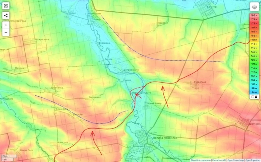 Сообщается, что ВС РФ продвигаются и к северо-западу от Великой Новоселки, постепенно выходя к стратегически трассе на Запорожье. Еще одно продвижение фиксируется в районе Новоелизаветовки, южнее Красноармейска (украинское название-Покровск).