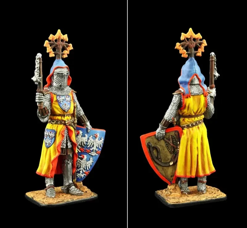А вот у рыцаря-миннезингера Дитхельм Гоэли (XIII в.) нашлемное украшение и рисунок герба совпадают полностью. Раскрашена фигурка художниками «Silver Dream Studio». На иллюстрации в «Кодексе…» изображен за совершенно мирным занятием – игрой в трик-трак!
