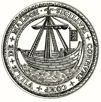 Забавно, что в «Книге Страшного Суда» про Малдон написано, что в 1086 году в Малдоне числилось всего 180 полноправных горожан, но, тем не менее, город получил от короля право на самоуправление… в обмен на одного боевого коня и один военный корабль! Сегодня там живёт около 15 тысяч жителей, так что, по нашим меркам, это скорее большая деревня, хотя и с древней историей. Несмотря на то, что в то время город был невелик по размерам, в нём насчитывались целых три торгово-ремесленные гильдии, причём члены их, как оказалось, были заядлыми театралами и регулярно устраивали в городе сценические представления и мистерии на различные религиозные темы. Но в 1574 году пришедшими к власти в городе пуританами эти представления были запрещены. Торгово-ремесленные гильдии не сдались и нашли выход: стали приглашать профессиональных актёров, раз самим им это было запрещено. Однако в 1630 году эти мистерии были запрещены окончательно и бесповоротно, как развращающие граждан города. В любом случае, раз это был средневековый город, то у него был и свой собственный герб, и он тоже подчёркивал его отношение к мореплаванию.