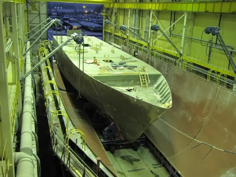 Подготовка к строительству головного корабля началась в 2007 году. Первые два года ушли на проектирование, еще три — на отработку новой для завода технологии вакуумной инфузии.