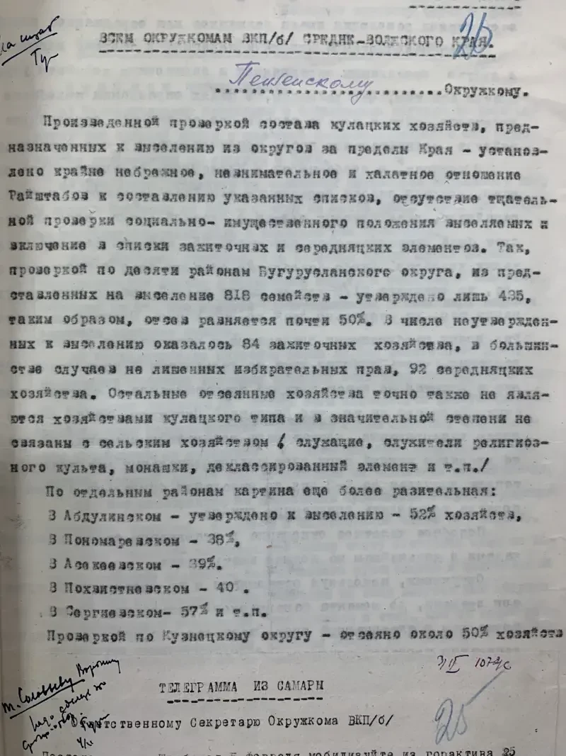 Сколько было кулаков в СССР на начало 1930 года? Часто пишут, что нет данных. А вот эта телеграмма говорит об обратном.