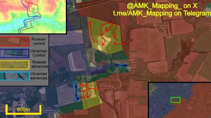 В Успеновке российские штурмовые отряды в последние недели успешно продвигаются на запад через село. Под прикрытием мощной артиллерии и ударов FPV-дронов военные заняли первую улицу, затем футбольное поле и трёхэтажное здание рядом. Оттуда ВС РФ начали атаку на центральную улицу, закрепившись в домах, а затем перешли к самой западной улице, захватив её северный и южный концы.