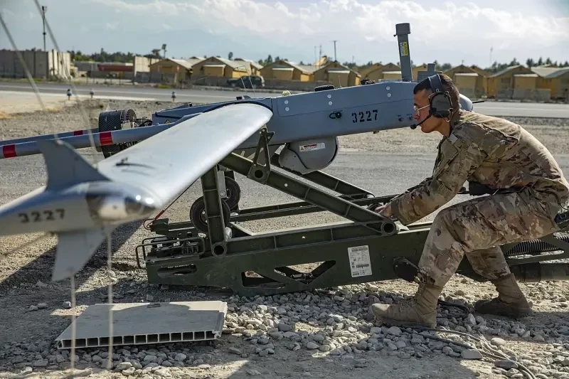 Уходящий на покой RQ-7 Shadow. Мало того, что дрон большой и медленный, так ещё и требует запускается с довольно громоздкой пусковой установки. Можно запустить и просто «с земли», но для этого понадобится кусочек ровного, твёрдого покрытия, чтобы он разбежался.