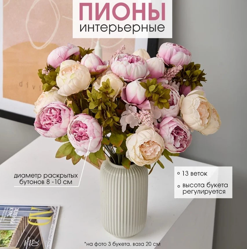 Искусственные пионы – это идеальное решение для тех, кто хочет украсить свой дом яркими и пышными цветами без лишних хлопот. Букет состоит из семи крупных бутонов насыщенного персикового оттенка, которые выглядят максимально реалистично благодаря детально проработанным лепесткам и выразительным листьям. Высота композиции – 45 см, что позволяет размещать её в разных интерьерах: от спальни и гостиной до балкона или ванной. Эти цветы не боятся влаги, жары и перепадов температуры, а значит, останутся красивыми в любых условиях. Гибкие стебли можно легко разъединять, регулируя высоту букета по своему усмотрению. Для придания цветам естественного объёма рекомендуется отпарить лепестки перед использованием. Искусственные пионы – это стильное украшение дома, которое создаст атмосферу уюта и свежести без необходимости ухода.