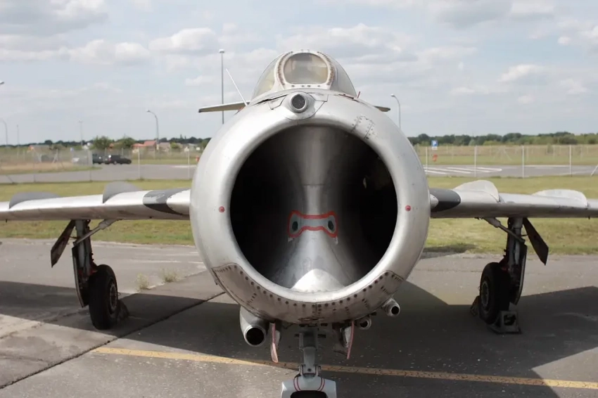 МиГ-15бис – внизу носовой части видны стволы двух пушек калибра 23 мм и одной пушки калибра 37 мм