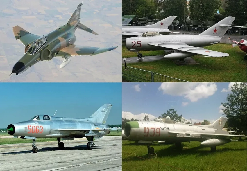 По часовой стрелке – F-4 Phantom, МиГ-17, МиГ-19 и МиГ-21