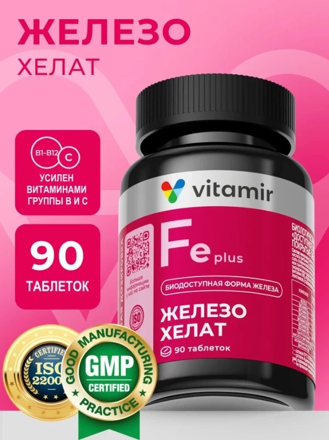 В рейтинге «бады железо топ» VITAMIR PRO занимает уверенную позицию — это комплекс, созданный с прицелом на женское здоровье и профилактику анемии. Основа — хелатное железо (бисглицинат), которое усваивается без агрессии к желудку и эффективно насыщает организм кислородом. Дополнительно в формуле витамины группы B и С, усиливающие метаболизм, поддерживающие энергию и нервную систему. Препарат сертифицирован, безопасен и идеально вписывается в ежедневную поддержку организма.