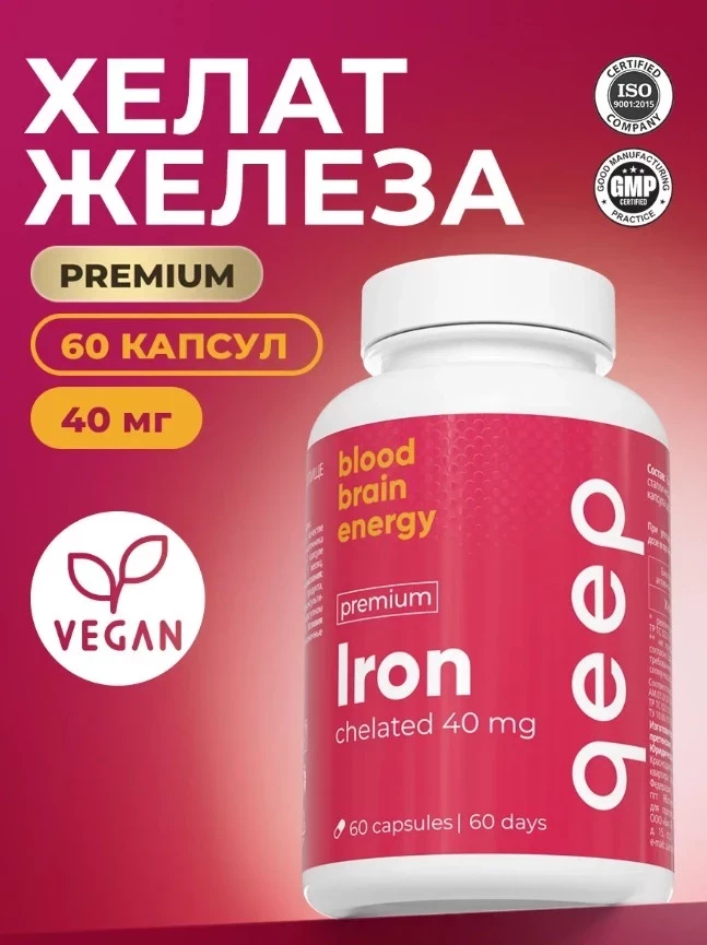 Железо хелат витамины от Qeep — это эффективная добавка для женщин, направленная на поддержание нормального уровня железа в организме. Благодаря высокобиоактивной форме бисглицината железа, добавка легко усваивается и помогает справиться с дефицитом железа, который часто возникает в репродуктивный период. 40 мг железа в капсуле способствует улучшению уровня гемоглобина, нормализации гормонального фона и повышению общей жизненной энергии. Продукт идеально подходит для женщин, страдающих от усталости, слабости и нарушений концентрации.
