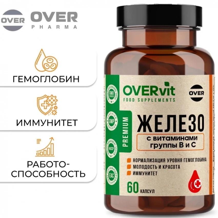 Если вы ищете бады железо топ — этот комплекс от OVERvit стоит рассмотреть в первую очередь. Он сочетает высокоусвояемое железо с ключевыми витаминами группы B и витамином С, что обеспечивает не просто профилактику анемии, а полноценную поддержку энергии, метаболизма и иммунитета. Формула построена на синергии: каждый компонент усиливает действие другого, помогая организму справляться с усталостью, дефицитом концентрации и упадком сил. Удобная капсульная форма и продуманный состав делают добавку универсальной для мужчин и женщин.