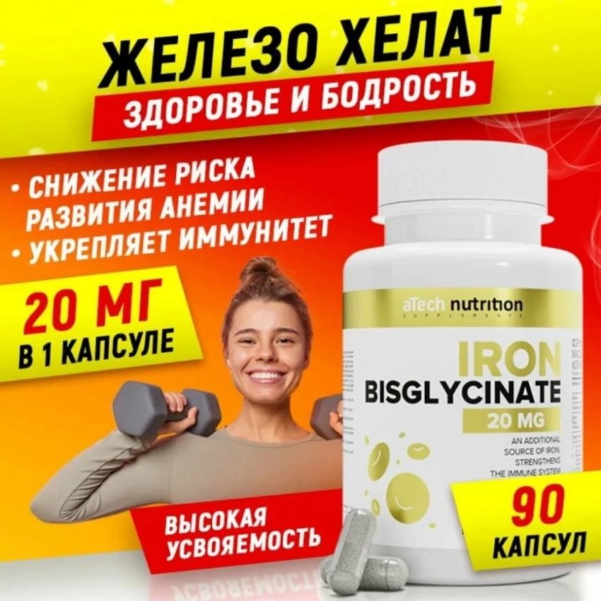 БАД от aTech Nutrition с железом в форме бисглицината — это хелатное соединение, которое усваивается в разы лучше, чем традиционные формы. Идеален для восстановления уровня гемоглобина, особенно при анемии, веганской диете или высоких физических нагрузках. Формула на основе глицината делает усвоение железа максимально мягким для ЖКТ, без побочек в виде тошноты и запоров. В условиях современной диеты — бады железо топ, особенно когда речь о дефиците.