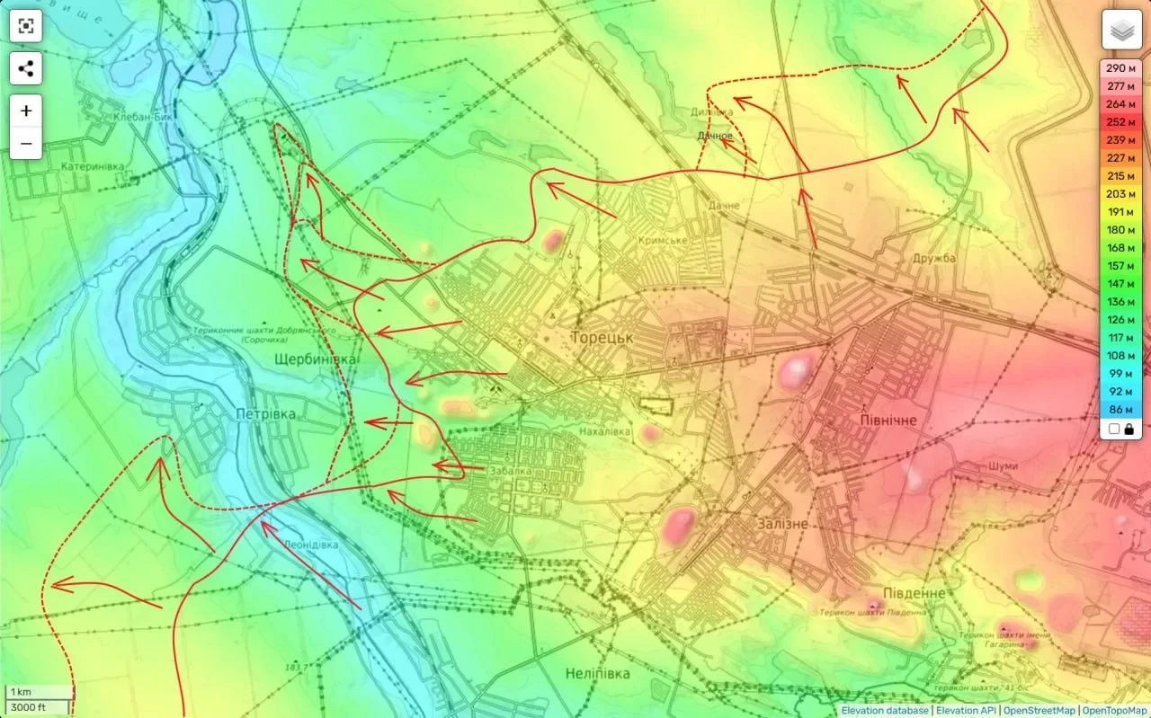 В свою очередь на Константиновском направлении, севернее Торецка, подразделения 4-й бригады 3-й армии ВС РФ продолжают успешное наступление. Российские войска продвинулись в районе села Дачное и северо-восточнее города, постепенно улучшая свои позиции.