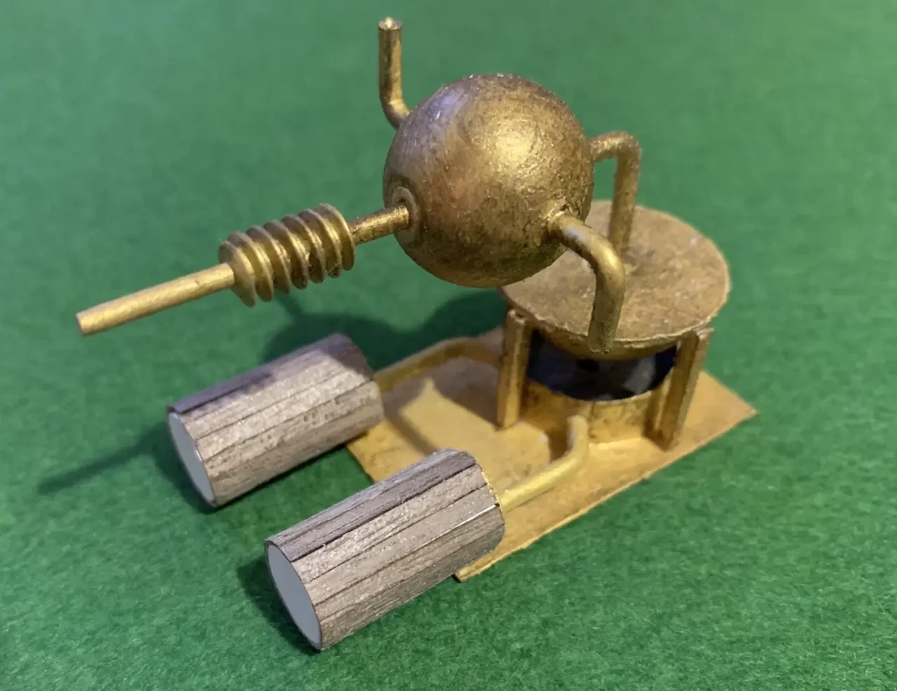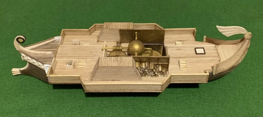 Полностью собранный корпус корабля перед покраской. Обратите внимание на «бронзовые листы» ограждения эолипила и… сложенные возле них дрова