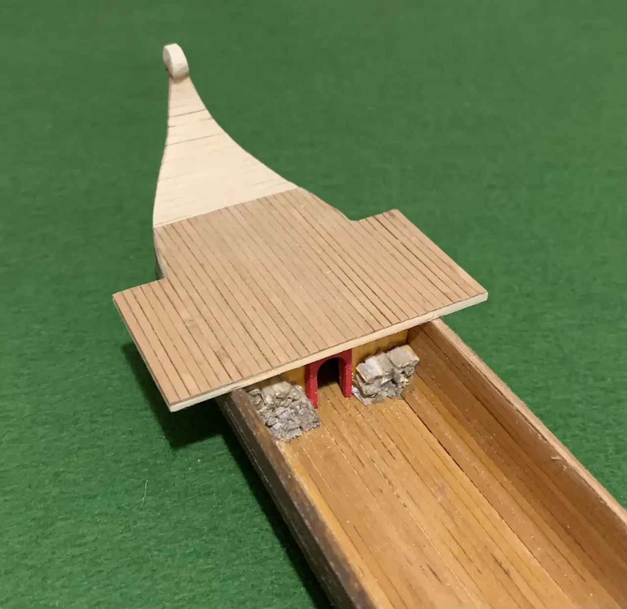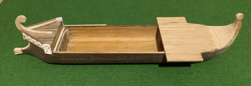 Начнём с того, что основой для такого корабля в то время вполне могла послужить монера – римский боевой корабль с одним рядом вёсел, каждым из которых гребло по нескольку человек. Основой корпуса такого корабля является полуцилиндр с надставленными бортами, что сильно упрощает изготовление модели.