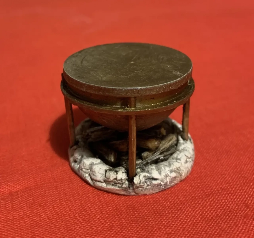 Паровой котёл – половинка деревянного шарика, покрашенная под бронзу. Очаг – всё та же самополимеризующаяся глина…