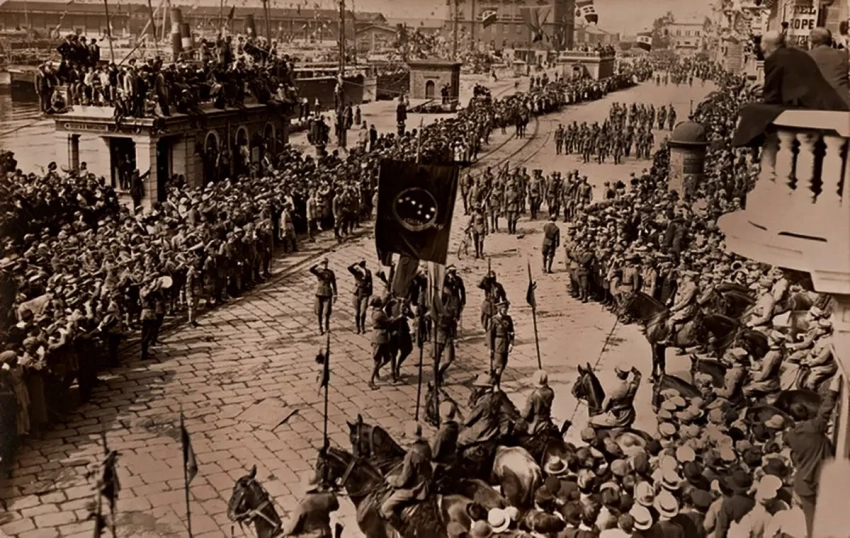 А передавать было что, в трюмах «Персии» были сказочные богатства: две тяжелые и двадцать легких гаубиц, 8 самолетов Lohner L из числа конфискованных у проигравшей Австро-Венгрии, тысячи винтовок, пулеметы и миллионы патронов. В общем, неслабо так поддержали своих…