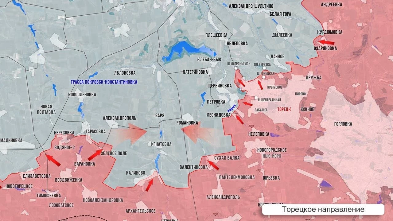 На Покровском фронте в Успеновке штурмовики атакуют ж/д станцию - ключевой объект для обороны ВСУ в этом селе. В Котлино наши заняли ферму севернее села и продвинулись вдоль ж/д до станции «о.п. №13». В Зверево идёт сражение у западных границ села, ВС РФ стараются взять под контроль террикон. Восточнее Шевченко есть попытки продвинуться вдоль ж/д путей к Чунишино. Еще восточнее упорнейшие бои за Миролюбовку, противника отходит к северной окраине. Есть продвижение южнее Малиновки вдоль дороги на Мирноград. К югу от Покровска сообщают, что под прикрытием нелётной погоды и зелени ВС РФ совершили важный рывок и фактически выбили противника из Новоалександровки и зацепились за восточную окраину Новосергеевки. В Котляровку наши штурмовики зашли с севера и вытеснили ВСУ на юго-западную окраину. В Орехово наши бойцы взяли под контроль одну из 2 улиц.