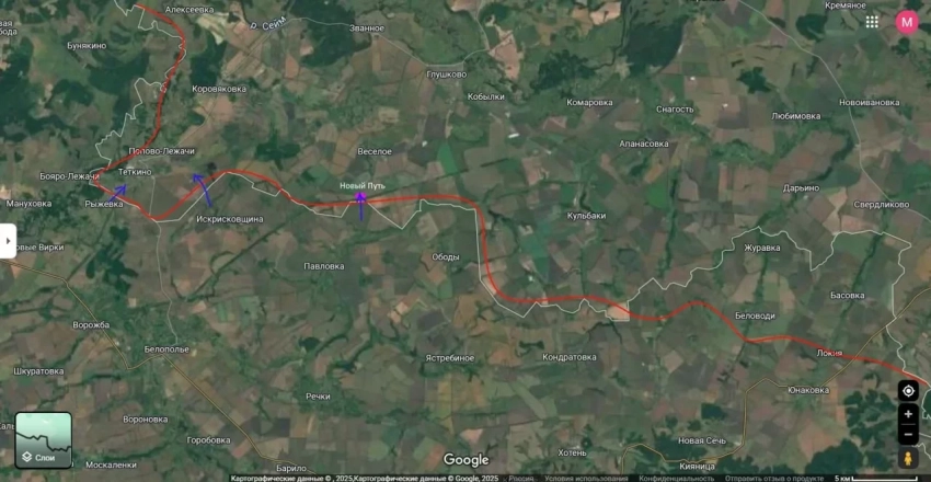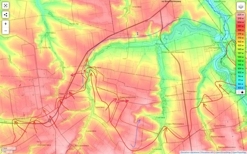 Во-первых, прорыв на Новоеленовку вчера привел не только к полному освобождению это села, но и прорыву линии обороны на западном берегу реки Бычок. Что уже вчера вылилось в наше движение севернее (по линии укрепов, которые мы берем во фланг) и на запад. Где мы заняли еще один большой кусок трассы Покровск-Константиновка и даже перевалили через нее с заходом в тыл гарнизону ВСУ в районе Новой Полтавки (где пока противник оказывает упорное сопротивление).