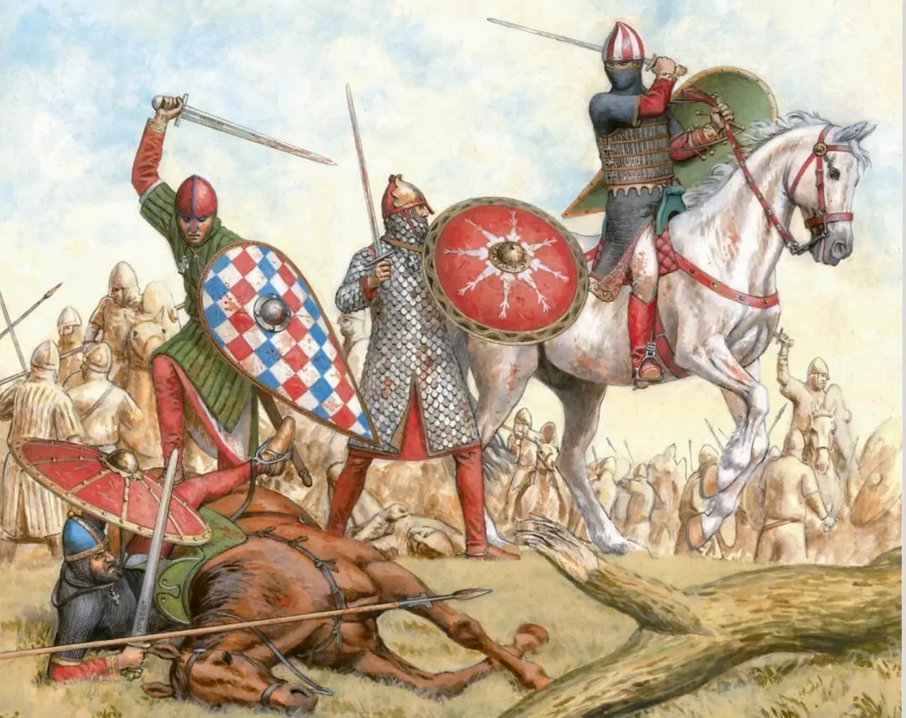 Норманны и лангобардские воины. Сер. XI в. Худ. Флорен Винсен. Издательство Osprey Publishing
