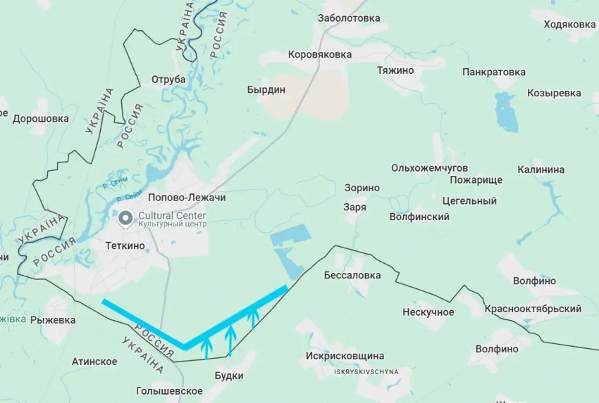 Нет ни одного населённого пункта, который бы украинскими войсками контролировался. Но есть узкая полоска приграничной территории южнее Тёткино, которая пока под ВСУ. Глубина полосы в среднем составляет около 800 м, протяжённость – около 5 км - до небольшого лесного массива, что «напротив» сумской Беспаловки.