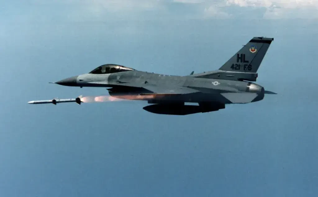 F-16 из 421-й истребительной эскадрильи запускает ракету AIM-120 AMRAAM