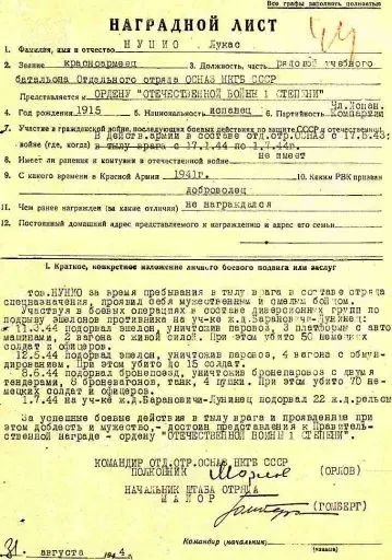 Другой член этой группы – Андрес Милья Мильян – стал командиром взвода подрывников-диверсантов, в 1943 году на протяжении трёх месяцев выполнял задания в немецком тылу.