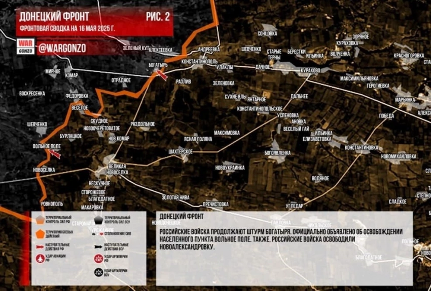 ВС РФ ведут ожесточённые бои, штурмуя Богатырь на Новопавловском направлении: свежие данные на 16.05.2025