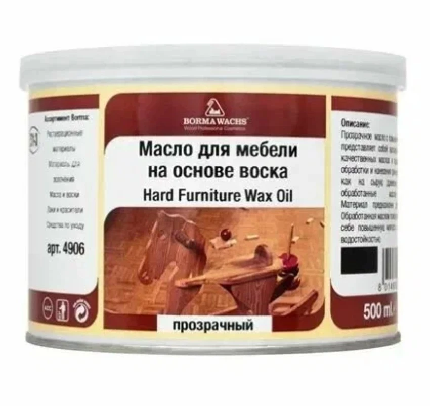 Hardwax furniture oil от Borma Wachs — достойный представитель в масло для мебели рейтинг, особенно если нужна премиальная финишная отделка. Благодаря комбинации натуральных масел, смол и восков, оно не только придаёт дереву шелковисто-матовую глубину, но и эффективно защищает от влаги и механических повреждений. Подходит как для новых, так и для ранее обработанных поверхностей. Идеально ложится на пористые породы, при этом подчёркивает текстуру без лишнего блеска и без изменения тона древесины.