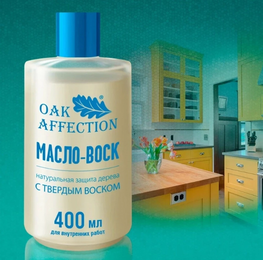 Масло Воск OAK AFFECTION прозрачный уверенно входит в масло для мебели из дерева рейтинг, сочетая экологичность, универсальность и эффектную защиту. Его натуральный состав — минеральное и льняное масла, пчелиный и карнаубский воск — подходит как для мебели, так и для детских игрушек и разделочных досок. Гелеобразная консистенция упрощает нанесение, а отсутствие запаха делает процесс комфортным. Масло эффективно защищает древесину от влаги, не изменяя её цвета, и сохраняет естественную текстуру при длительном использовании.
