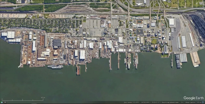 Спутниковый снимок Google Earth: верфи Newport News Shipbuilding