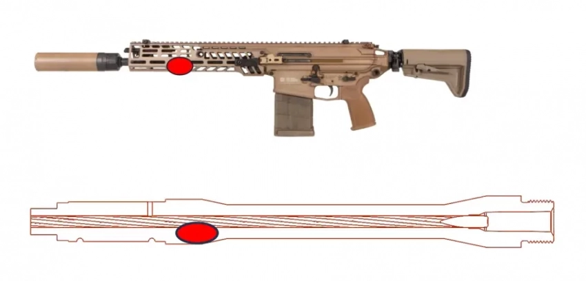 Такие требования вкупе с увеличением калибра потребовали создания патрона с огромной дульной энергией. А это, что логично, отрицательно сказывается на ресурсе всех внутренних деталей. Ведь это не снайперское оружие, которое может стрелять раз в пару минут, и это будет считаться интенсивным ведением огня. Это «автомат боевого пехотинца», там и режим автоматического огня есть. Трент утверждает, что не только опросил 150 солдат и офицеров 1-й бригадной боевой группы 101-й ВДД, но даже лично осмотрел 23 винтовки. Ну так вот, капитан утверждает, что абсолютно все винтовки при настреле от 2000 выстрелов получают повреждения ствола. Он описал это как «каверны». Ствол, по сути, не выдерживает высокоимпульсного патрона. Производитель же утверждает, что ресурс оружия 10000 выстрелов… Мягко говоря, противоречивые данные выходят.