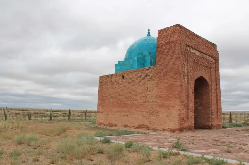 Выдержанный в мусульманском стиле мавзолей Джучи, расположенный в Улытауском районе Казахстана