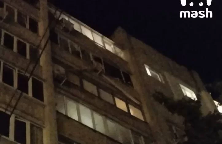 По данным властей, также пострадали припаркованные во дворе автомобили: две иномарки получили видимые повреждения. Telegram-канал Mash опубликовал фотографии, на которых видно выбитое остекление и разбросанные обломки.