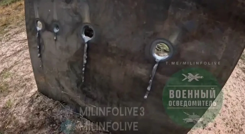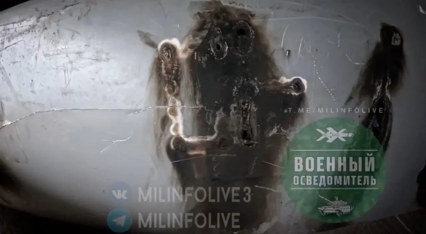 Металлический лист после воздействия лазера. Кадр из видео от ОСпН «Кочевник» / Telegram «Военный осведомитель»