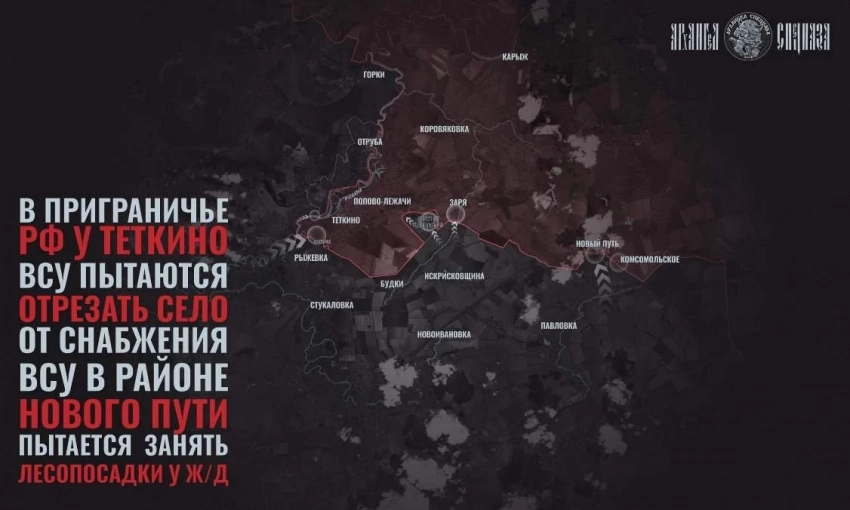 Утром на направлении Рыжевка - Тёткино штурмовая группа 24 ошб "Айдар" (запрещённая в РФ террористическая организация) выдвинулась в направлении нашей границы. В результате комплексного огневого поражения большая часть оккупантов уничтожена, остальные бежали вглубь Сумской области.