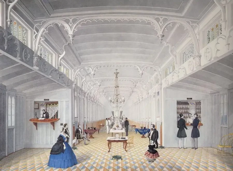 Рисовали пароходы не только мужчины, но и женщины. «Салон парохода с Миссисипи «Принцесса»». Мари А. Персак, 1861.