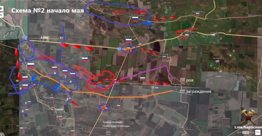 На Покровском направлении идут ожесточённые бои у границы с Днепропетровской областью, а также в районах западнее Орехово и Котляровки. Украинская армия оказывает активное сопротивление, стараясь сдержать наступление российских войск, сообщает "Военное дело".