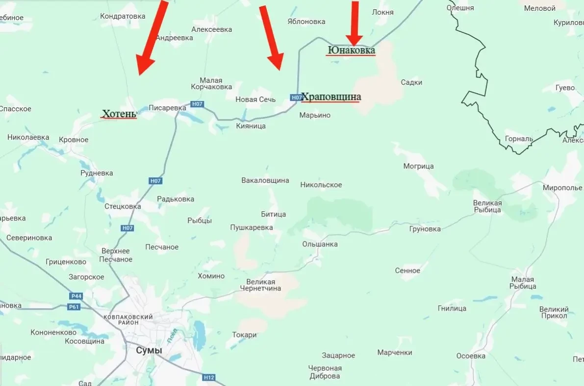 Подразделения ВС РФ продвинулись к населенному пункту Храповщина, что в 16-17 км от Сум