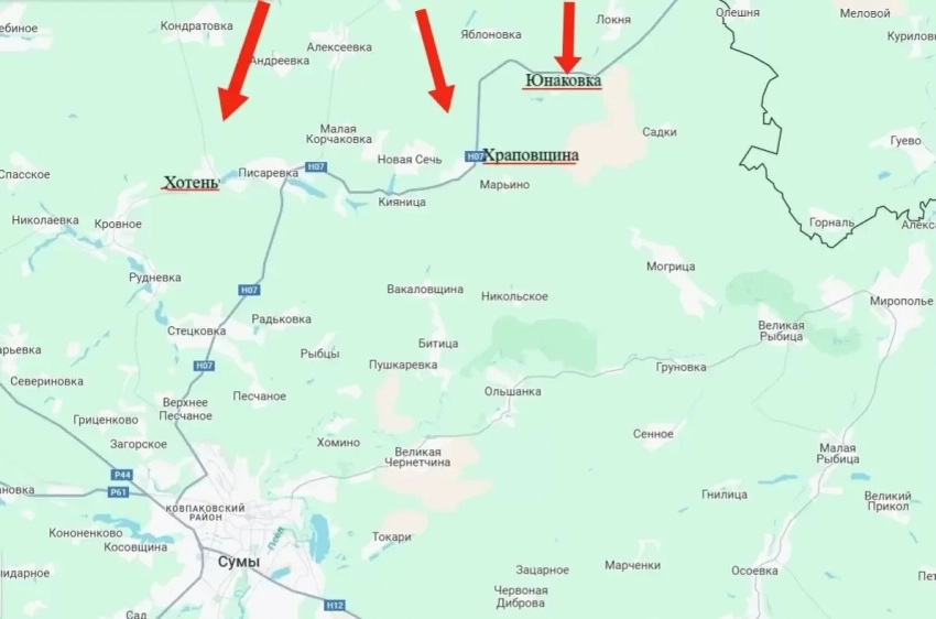 ВС РФ продвинулись к населенному пункту Храповщина, что в 16-17 км от Сум