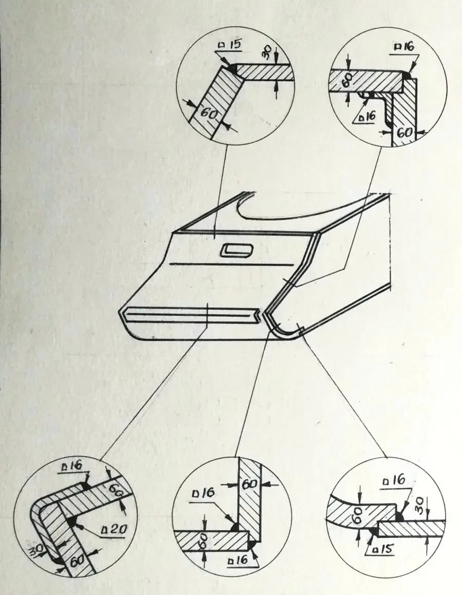 2. Наилучшие результаты по прочности и живучести дают соединения верхних лобовых деталей с подкрылками, выполненные в зуб и в шип и сваренные аустенитовыми электродами.