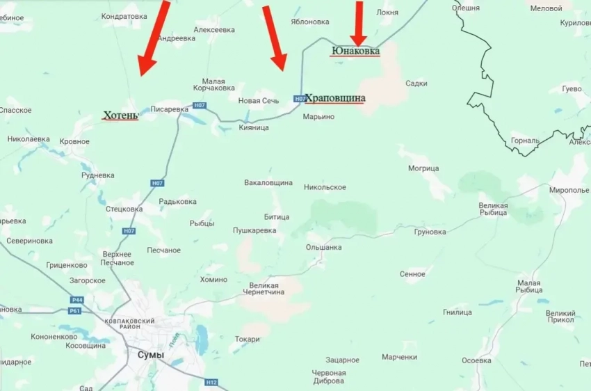 Российские войска с севера все ближе продвигаются к селу Хотень под Сумами